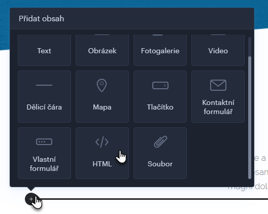 8. Nyní přejděte do editoru Webnode, vyberte místo, kam chcete diskuzní fórum vložit a přidejte obsah typu HTML kód.