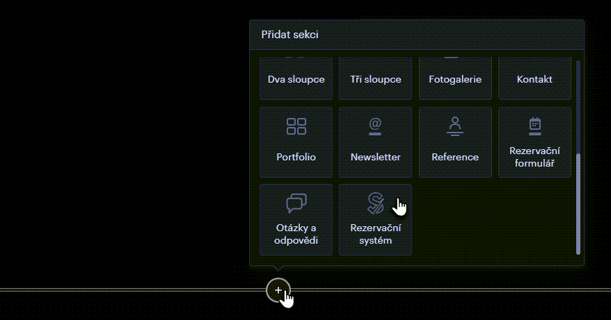 2. Přidejte novou sekci a vyberte možnost Rezervační systém.
