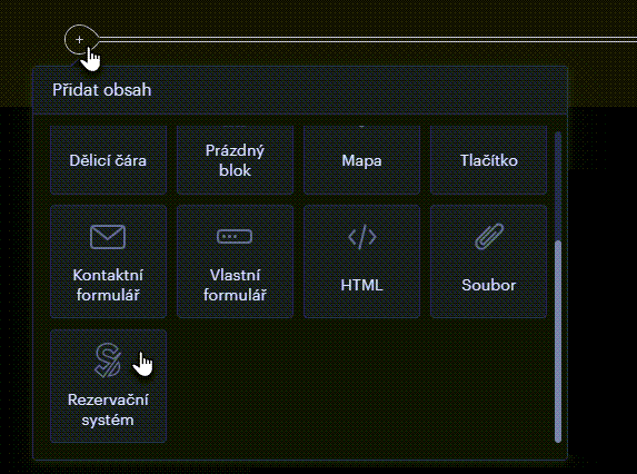 1. V editoru přidejte nový obsah a vyberte možnost Rezervační systém.