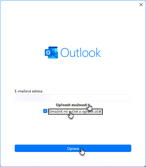 3. Zde vyberte účet a klikněte na tlačítko Opravit…