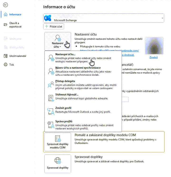 2. Zde klikněte na Nastavení účtu a dále opět vyberte Nastavení účtu…