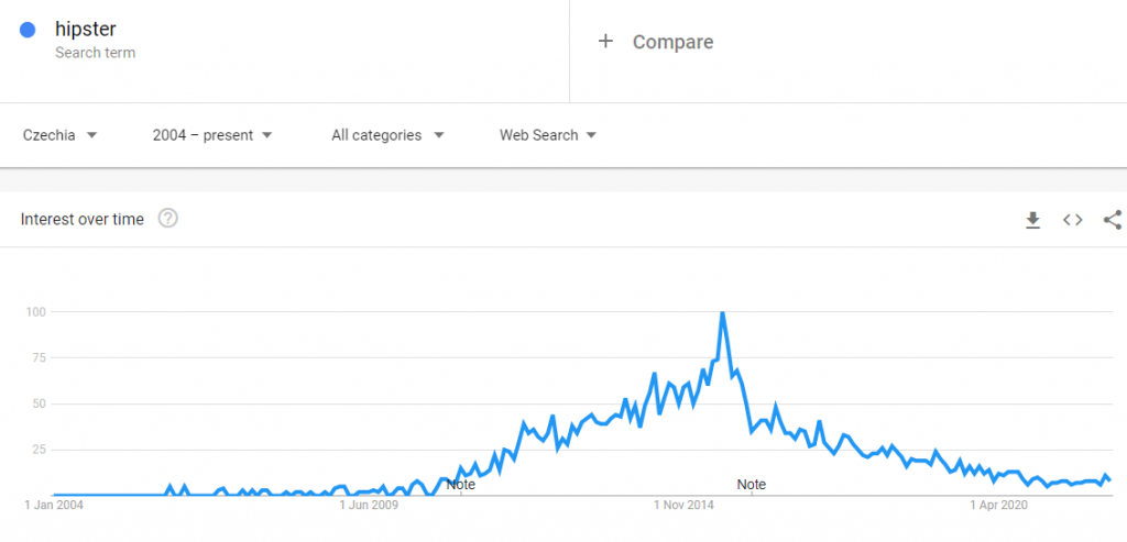 Nejsnadnější cestou jsou Trendy Google. Najdete zde statistiky vyhledávaných termínů jakéhokoliv klíčového slova. Můžete se například podívat, že slovo hipster se v Česku na internetu začalo vyhledávat v roce 2010, kdy se začala tato subkultura objevovat i u nás.