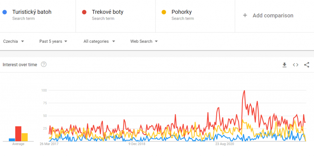 Přehled vyhledávání si můžete roztřídit podle země, času, nebo porovnávat vícero termínů najednou.