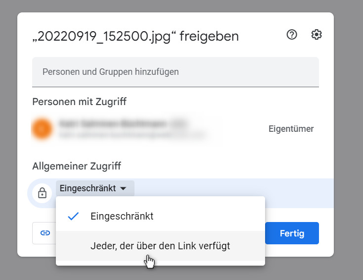 5. Wählen Sie Jeder, der über den Link verfügt und kopieren Sie dann den Link.