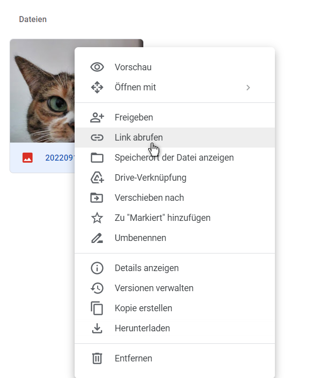 4. Klicken Sie mit der rechten Maustaste auf die Datei und wählen Sie Link abrufen.