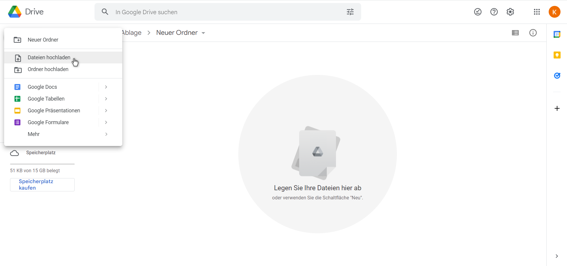 Eine Datei in Google Drive hochladen