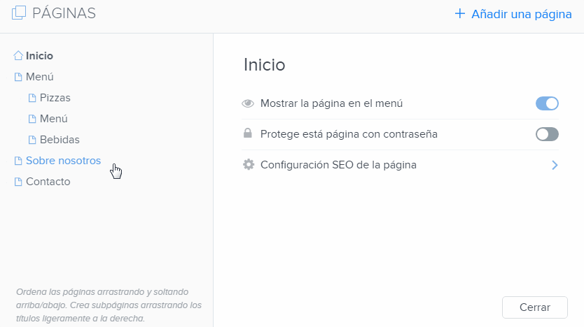 SUGERENCIA: Puedes crear subpáginas de manera similar, colocando una página debajo de otra.