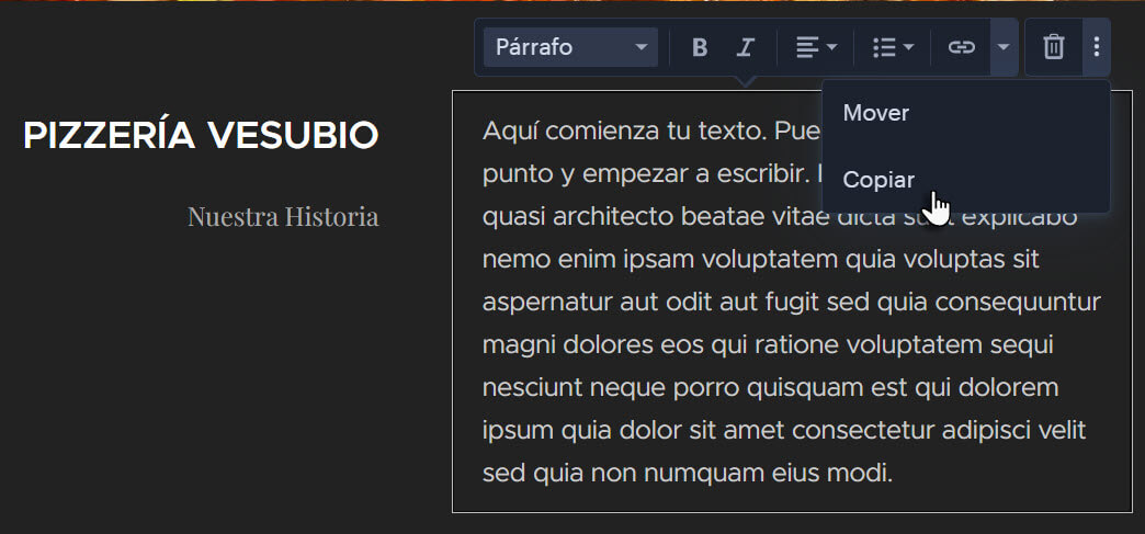 En este artículo aprenderás cómo copiar o mover bloques de contenido en el editor, tanto dentro de una sola página como en todo el sitio web.