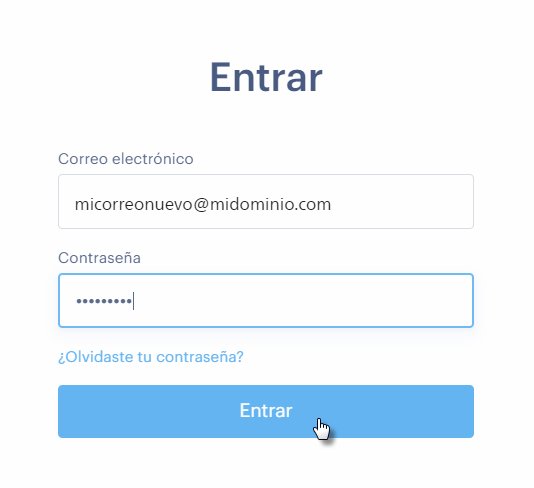 - Entra con la dirección de correo electrónico que creaste con tu dominio, por ejemplo micorreonuevo@midominio.com. No pongas la dirección de correo electrónico de login al editor de la web. Estas son cuentas separadas.