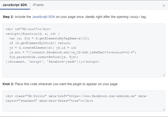 - En la página Facebook para developers elige qué tipo de widget quieres. Consigues dos códigos.