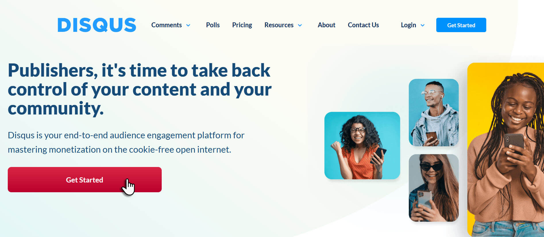 1. El primer paso es registrarte en el sitio web de Disqus. Haz clic en Get started.