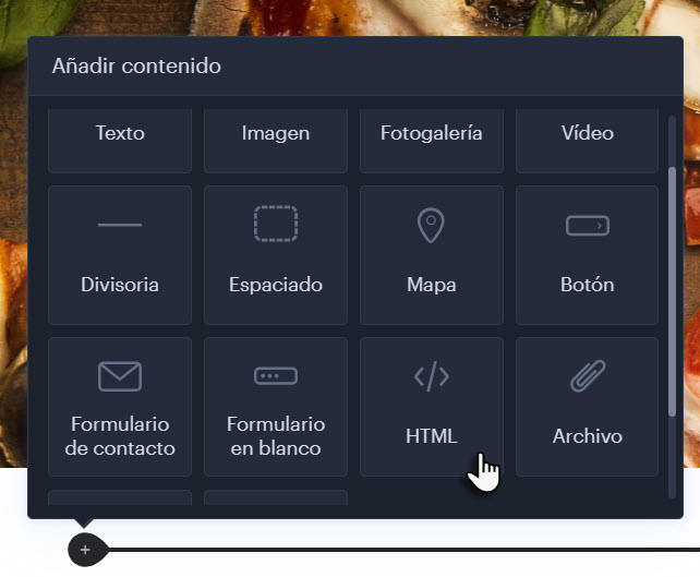 8. Ahora ve al editor de Webnode, elige dónde quieres insertar el foro de discusión y añade el tipo de contenido HTML.