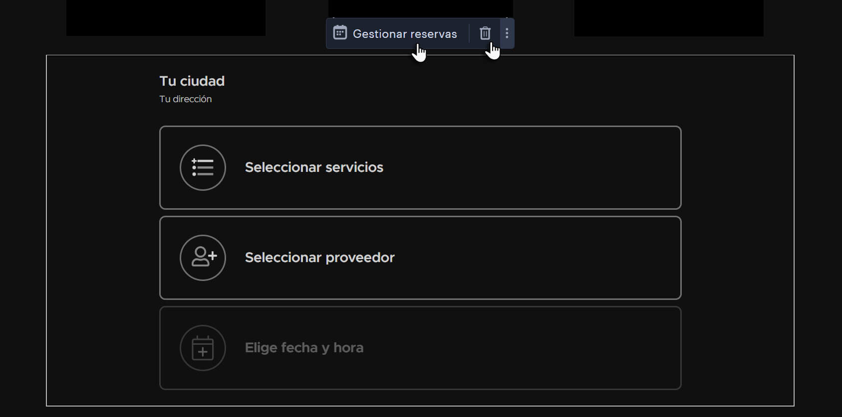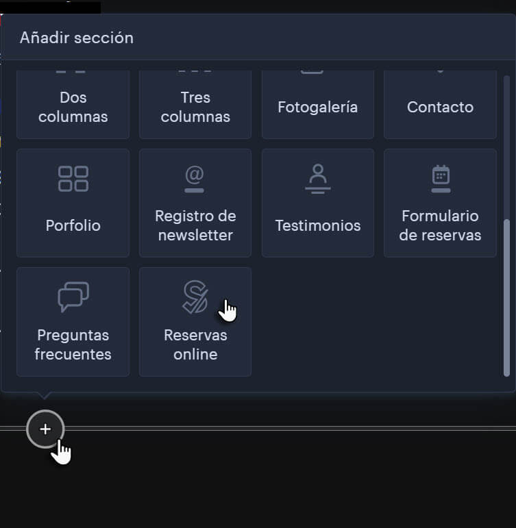 2. Añade una nueva sección y selecciona la opción Reservas online.