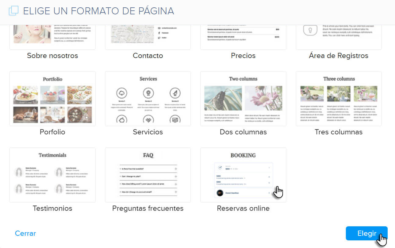 3. O bien, añade una nueva página y selecciona Reservas online.