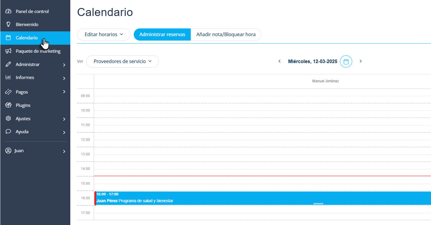9. Si seleccionas Calendario en el menú de la izquierda, podrás ver todas las reservas realizadas.
