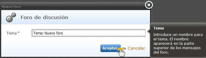 - Rellena el campo "Tema" con el nombre del foro. Confírmalo haciendo clic en "Aceptar".
