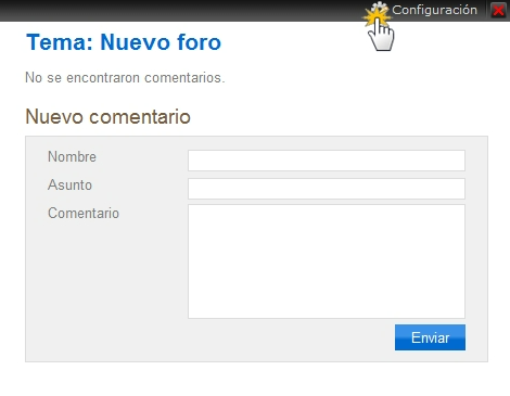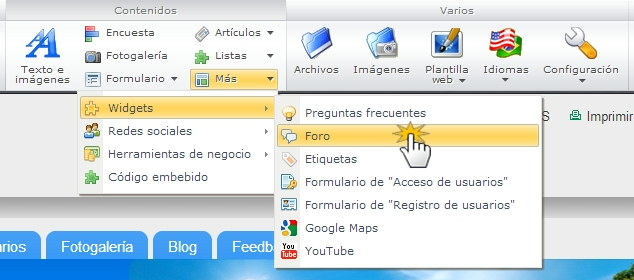 - En la barra de herramientas haz clic en "Más" --> "Widgets" --> "Foro".